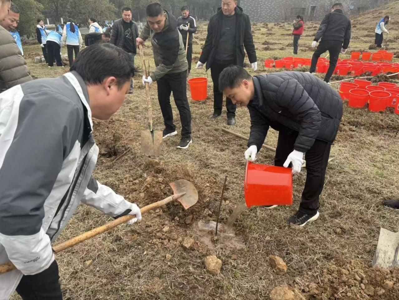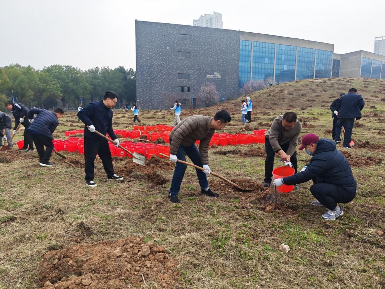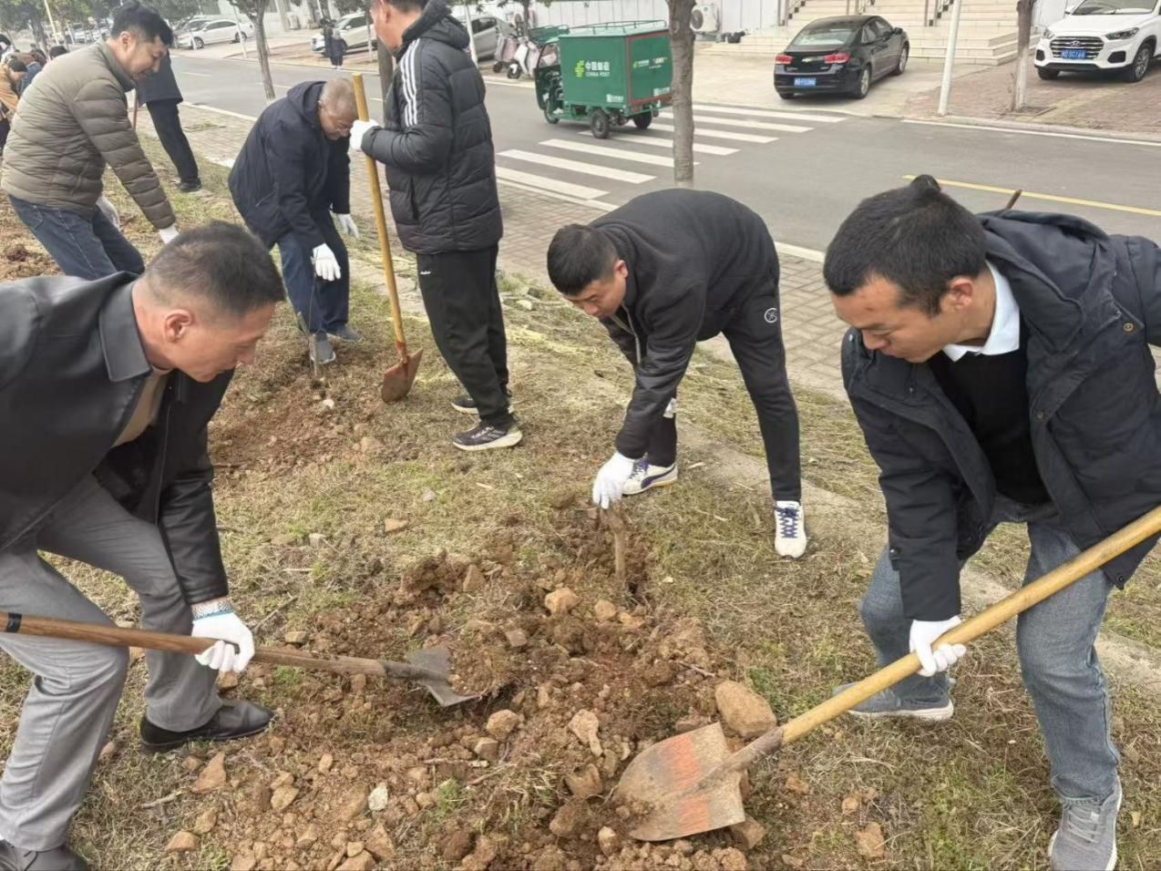 活动现场,党员同志们精神饱满、分工明确,充分发扬后勤人踏实肯干、团结协作的优良作风,挥锹铲土、扶苗定植、围堰浇水,每一个环节都认真细致、规范有序。大家以实干添新绿,用汗水美校园,原本空旷的场地很快栽满了新苗,为春日的校园增添了盎然生机。
